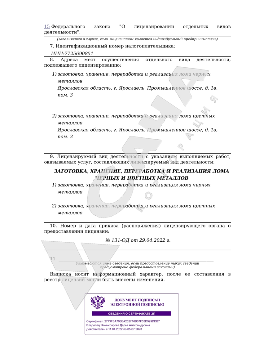 Также, мы обладаем всеми необходимыми лицензиями для ведения нашей деятельности по утилизации, переработке и обучению
