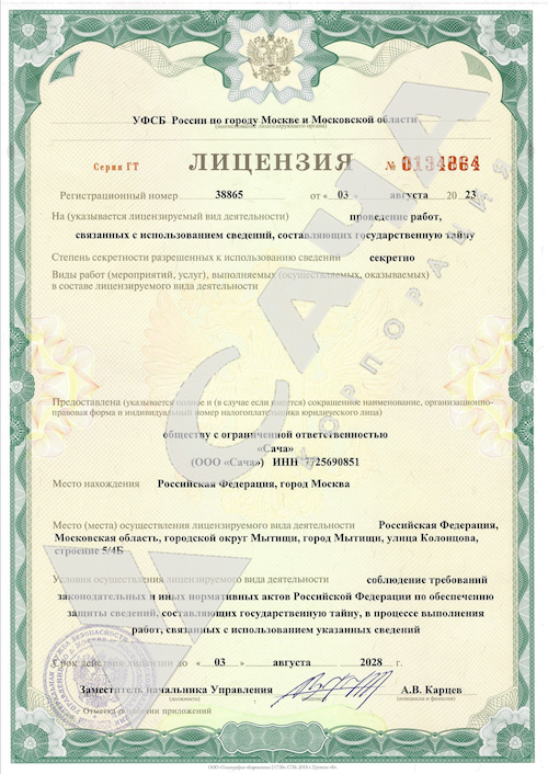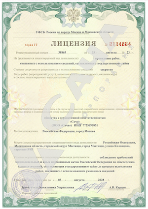 Лицензия на проведение работ, связанных с использованием сведений, составляющих государственную тайну